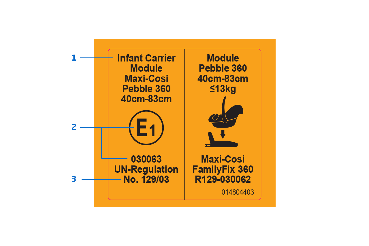 Überprüfe das orangefarbene Etikett, um sicherzustellen, dass dein Sitz den neuesten Sicherheitsnormen entspricht und die richtige Passform für dein Kind und das Fahrzeug hat.