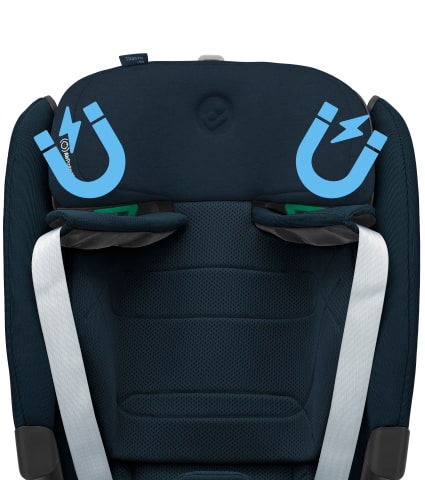 Der 5-Punkt-Sicherheitsgurt verfügt über magische Magnete in den Schulterpolstern, damit der Gurt nicht im Weg ist, wenn du dein Kind in den Sitz setzt.