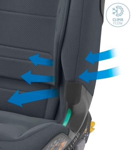 Spezielle perforierte ClimaFlow-Einsätze und ein atmungsaktives Netzgewebe fördern die Belüftung und sorgen für eine angenehme Temperatur, damit sich dein Kind jederzeit wohlfühlt.