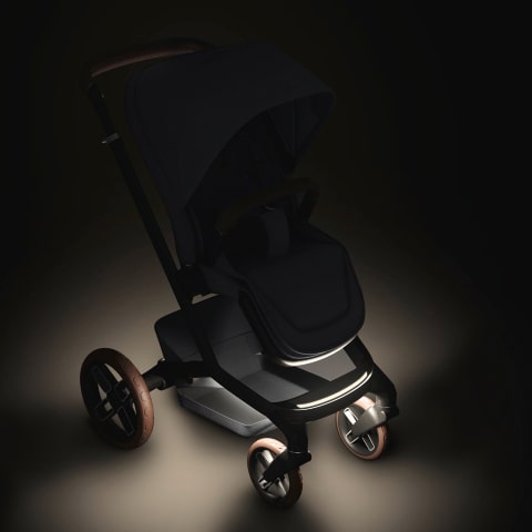 Das stilvolle Gestell des Fame verfügt über ein integriertes LED-Lichtsystem, das entwickelt wurde, um dunkle Straßen und schlecht beleuchtete Wege zu erhellen und dich und dein Baby jederzeit sicher und sichtbar zu halten.