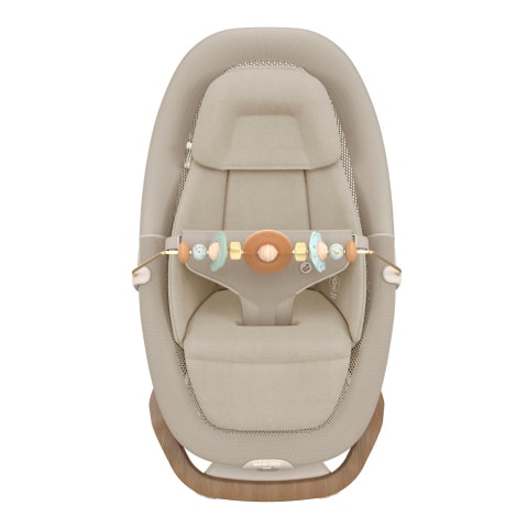 Bei der Entwicklung des Spielbogens wurde auf Naturholz, Perlen, Marmor-Optik und leuchtenden Farben gesetzt, sodass er perfekt zu deiner ikonischen Babywippe Dove/Dove Pro passt.